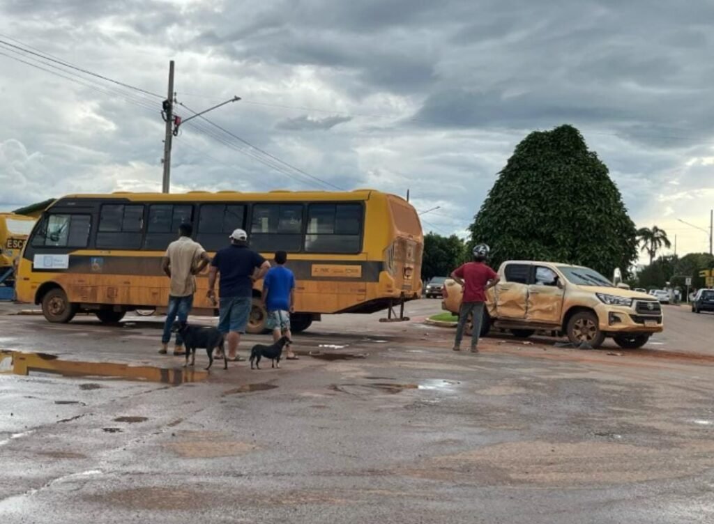 De acordo com o boletim de ocorrência, o ônibus escolar trafegava pela Avenida Nicarágua em direção à Avenida Otawa quando, ao cruzar a Avenida Porto Rico, foi surpreendido pela Hilux, que seguia no sentido da Avenida Brasil.