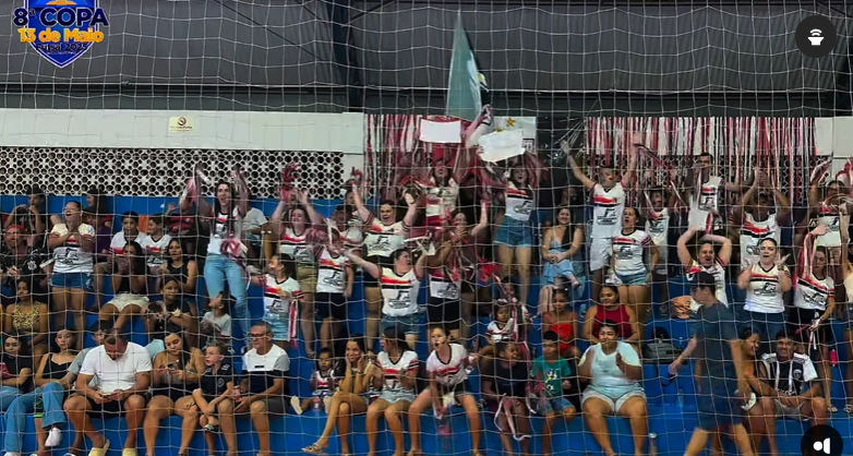 “Torcida Pré-Moldado dá show nas arquibancadas durante a 8ª Copa 13 de Maio — vibração, união e solidariedade marcaram essa equipe que venceu dentro e fora de quadra!”