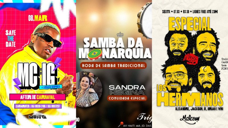 • Especial Los Hermanos, samba e show de MC IG marcam fim de semana pós Carnaval em Cuiabá