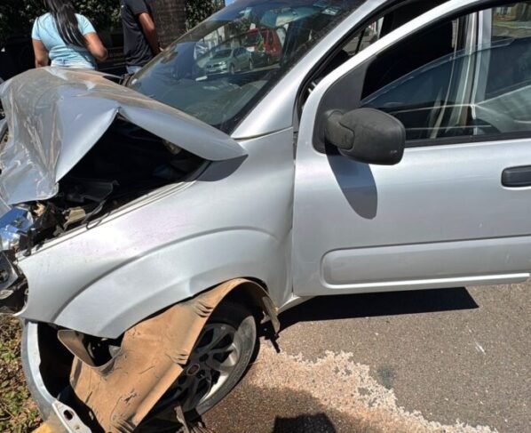 Um acidente de trânsito foi registrado no início da tarde desta sexta-feira (23), no cruzamento entre as avenidas Lupicínio Rodrigues e Porto Alegre, em Sorriso. A colisão envolveu um Fiat Uno e uma Toyota SW4.