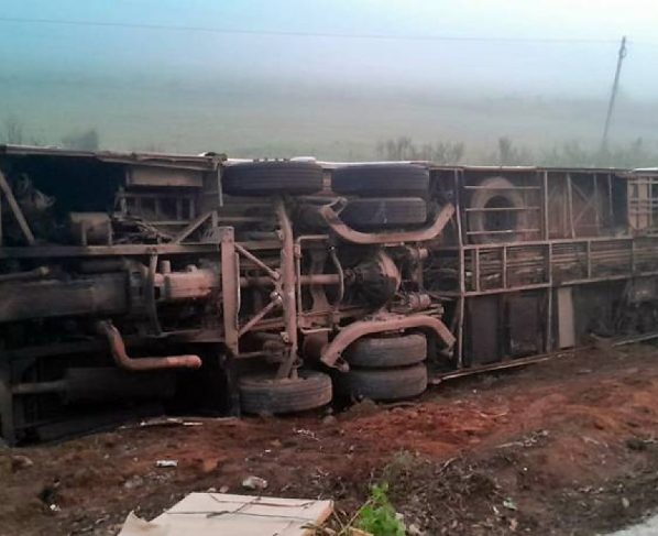 Um grave acidente mobilizou equipes de resgate na madrugada desta terça-feira (14) no Sul de Minas Gerais. Um ônibus que transportava 54 romeiros acabou saindo da pista, capotando e caindo em um barranco de cerca de cinco metros às margens da BR-267, na altura do km 308, próximo ao trevo que liga Caxambu a São Lourenço.