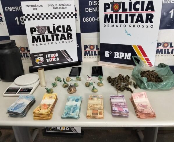 Policiais militares da Força Tática do 6º Comando Regional prenderam dois homens, de 21 e 54 anos, por tráfico ilícito de drogas, nesta quinta-feira (29.1), em Cáceres. Com os suspeitos, foram apreendidas 13 porções de maconha e pasta base de cocaína, e uma quantia de R$7.149,00 em dinheiro.