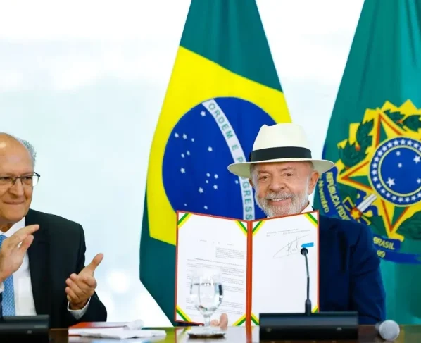 A assinatura foi acompanhada pelo vice-presidente, Geraldo Alckmin, e outros representantes da staff de Lula. – Foto: Secom-PR