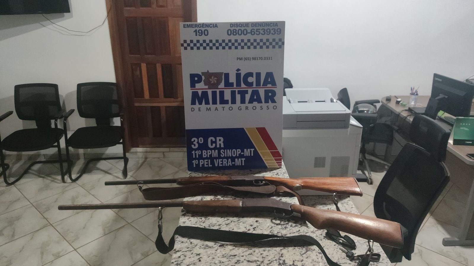 Diante da gravidade da denúncia, os policiais se deslocaram até a residência, onde localizaram o suspeito. Durante a abordagem, foram encontradas duas armas de fogo e munições sem registro.