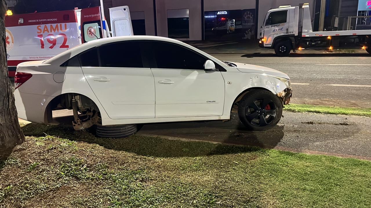 O solicitante, identificado como J.A.D., de 44 anos, afirmou que estava sendo perseguido por dois homens armados em uma motocicleta, o que teria provocado a perda de controle de seu Chevrolet Cruze e a colisão contra o canteiro central. Ele relatou ainda ter sido baleado na perna direita ao sair do veículo.