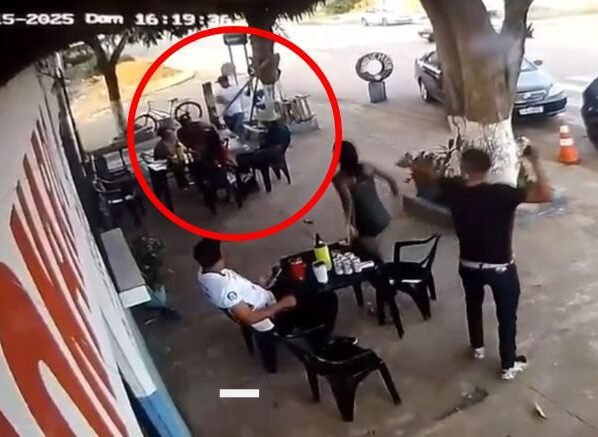Nas imagens, Daniel aparece vestindo camiseta branca e shorts jeans, caminhando até a vítima, que estava sentada em uma cadeira no bar. Ele se aproxima por trás, pega uma barra de ferro e desfere um golpe na cabeça do homem, que cai imediatamente no chão, inconsciente.