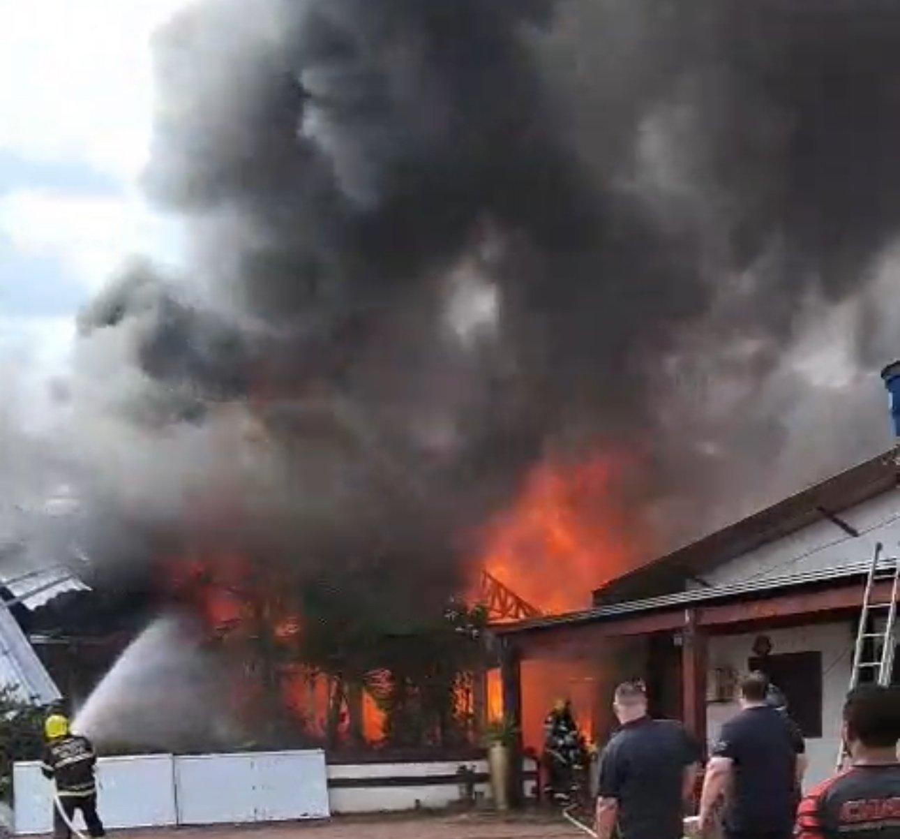 Viaturas do Corpo de Bombeiros foram acionadas e trabalham intensamente no combate às chamas. O objetivo principal é evitar que o fogo se alastre e atinja outras residências e empresas localizadas nas proximidades.
