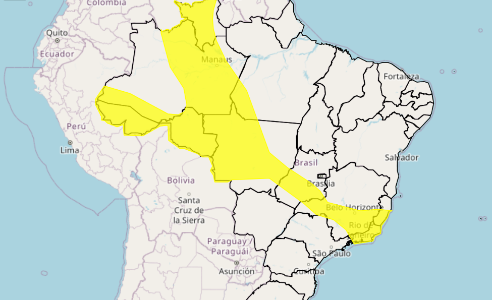 Por fim, o Inmet também alerta para perigo de chuvas intensas até as 9h de segunda em áreas do Amazonas: centro, sudoeste, sul, norte e região do Madeira-Guaporé. O total de chuva pode chegar de 50 a 100 mm no dia.