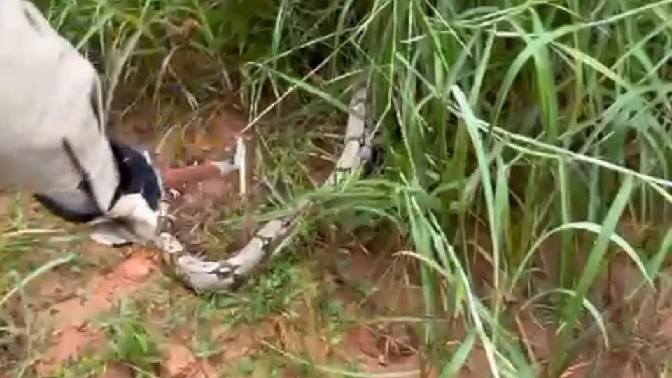 Após o resgate, a jiboia foi transportada e solta em uma área de preservação ambiental, onde poderá seguir seu ciclo natural sem representar perigo à população.