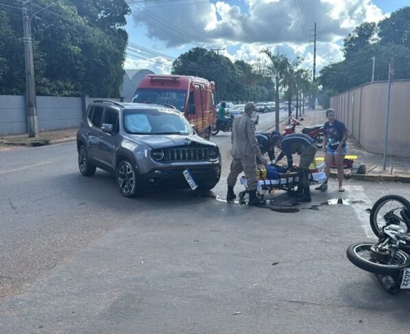 Um acidente envolvendo uma motocicleta e um carro de passeio deixou dois feridos na tarde desta segunda-feira (5), em Sorriso. A colisão ocorreu em um trecho movimentado, nas proximidades do quartel do Corpo de Bombeiros, durante o horário de pico.