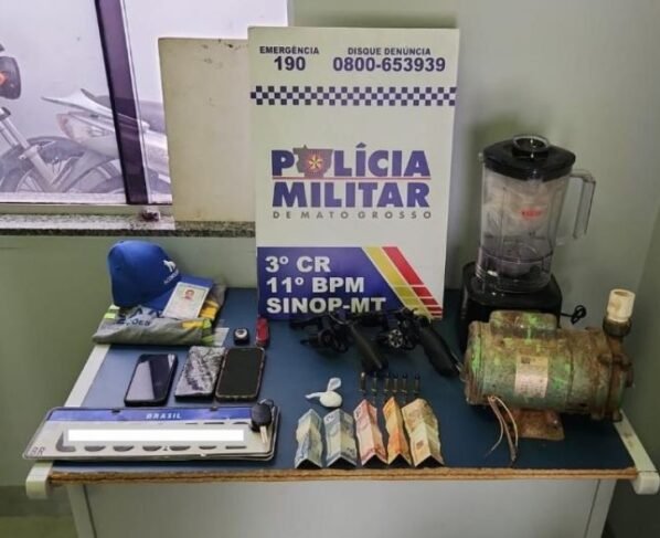 Conforme o boletim de ocorrência, os militares receberam informações sobre um roubo em andamento em um estabelecimento comercial, no Setor Industrial de Sinop. Assim que chegaram no local, os policiais flagraram os suspeitos com armas de fogo.
