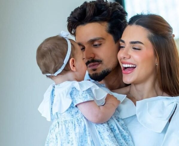 “Obrigada, meu Deus”, escreveu o pai, e “especial 28/11”, comentou a mãe. A decoração minimalista da festa foi em tons de branco e azul e a família escolheu roupas na paleta de cores — a pequena, um vestido de flores; Jade, um vestido com laço no ombro; e Luan, uma camisa listrada.