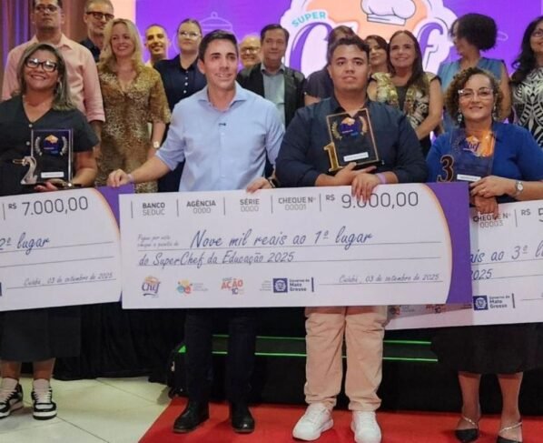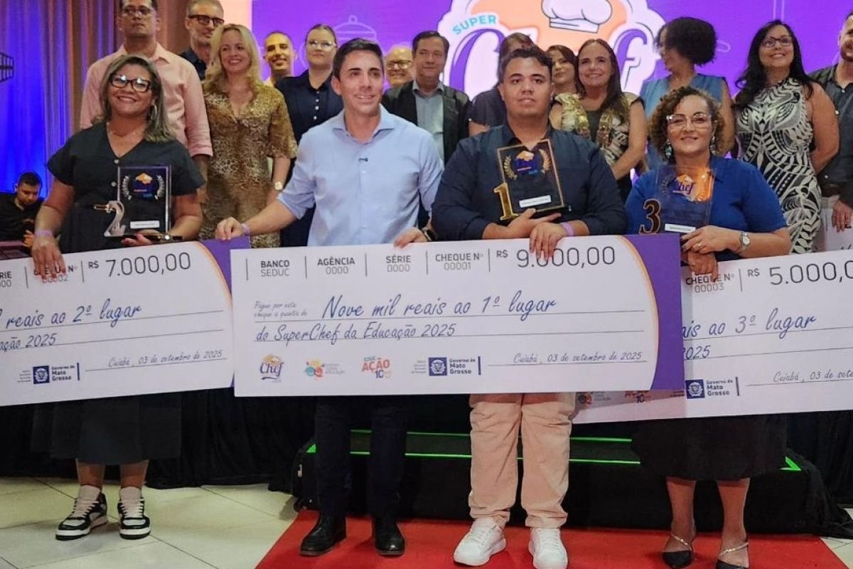 A cerimônia de premiação do concurso “SuperChef da Educação – Melhores Receitas 2025”, na noite desta quarta-feira (3), foi marcada por emoção, criatividade e muito sabor. Com o objetivo de valorizar o trabalho dos merendeiros escolares da rede estadual de ensino, o concurso é promovido pela Secretaria de Estado de Educação (Seduc-MT) e está na sua 3º edição.