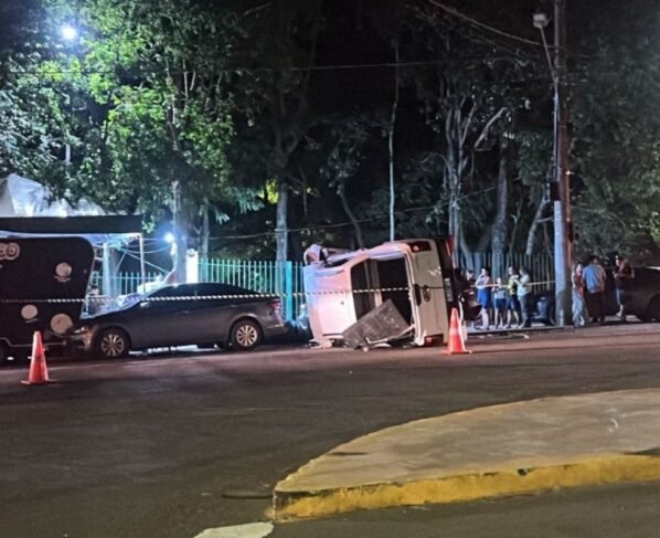 Após atingir dois carros estacionados e capotar uma caminhonete, uma motorista foi detida na noite desta terça-feira (17), nas proximidades do Parque das Nações Indígenas, em Campo Grande. Segundo a BPMTran (Batalhão de Trânsito da Polícia Militar) a motorista apresentava sinais de embriaguez, e estava com duas crianças no veículo, no momento do acidente.