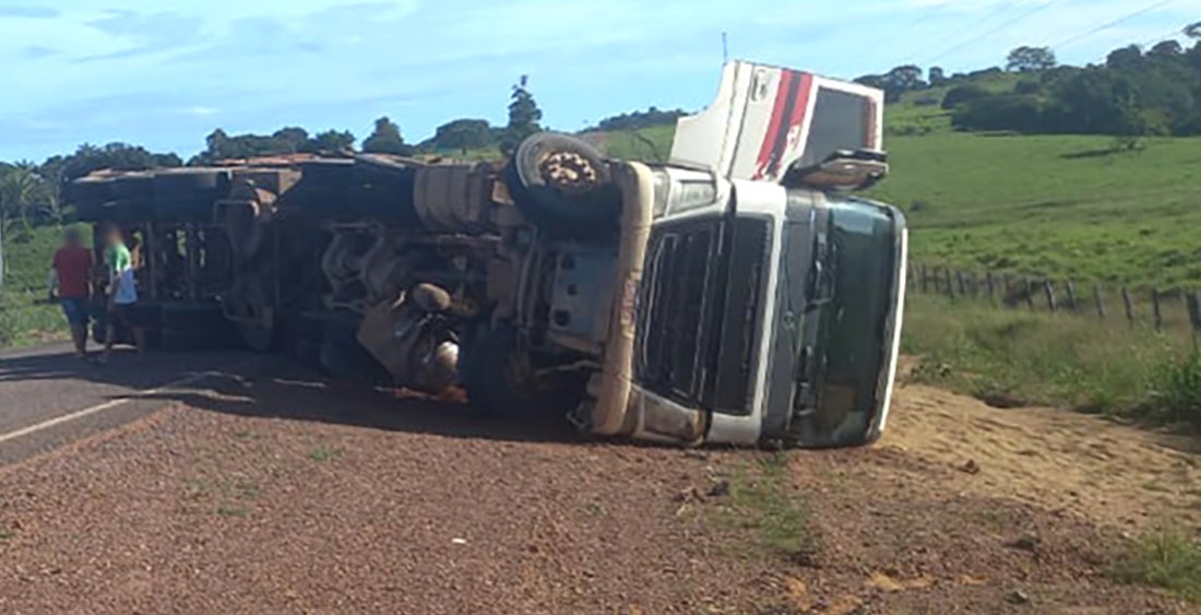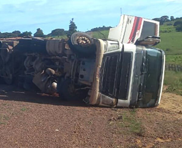 Motorista tenta desviar de buracos e carreta tomba em rodovia estadual no Nortão