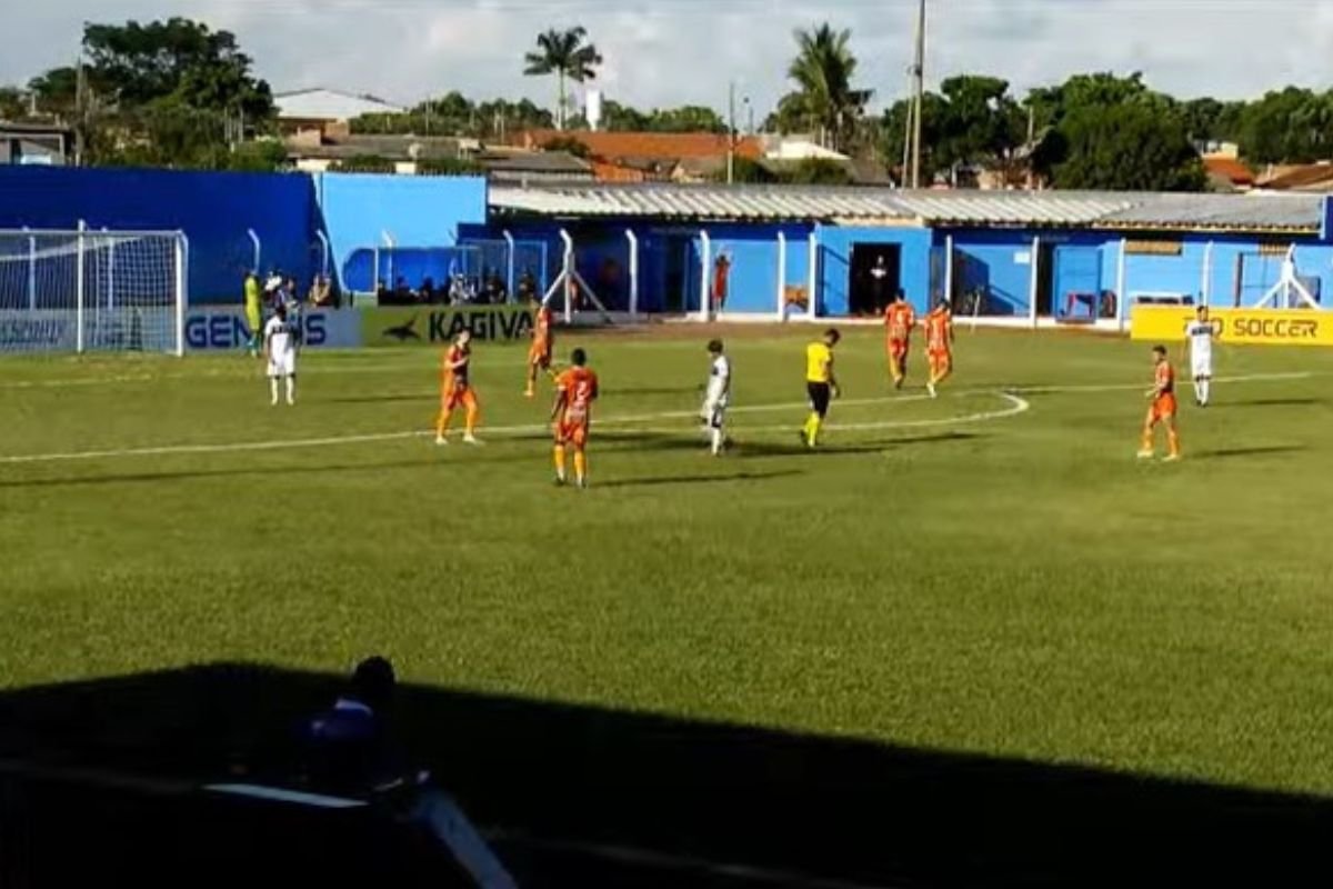 Jogadores em campo durante a partida deste sábado (7). (Foto: Pantanal TV)