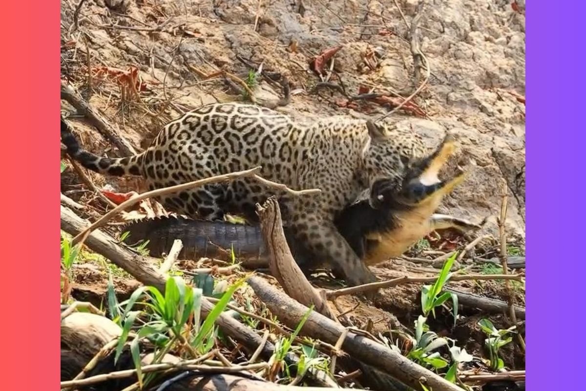 Onça abocanha jacaré. (Foto: Reprodução)