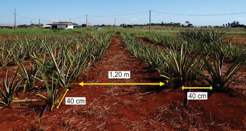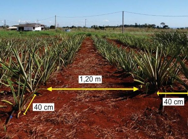 Quanto ao manejo, recomenda-se utilizar mudas tipo filhote, previamente classificadas por tamanho e submetidas à cura ao sol por cerca de sete dias. O plantio deve ser realizado em sulcos ou covas, com organização das mudas para garantir uniformidade, adotando-se densidade entre 30 mil e 40 mil plantas por hectare. A adubação deve ser baseada em análise de solo, com aplicações mensais de cobertura do primeiro ao nono mês, associada ao controle de plantas daninhas por capina manual e uso de herbicidas, especialmente nos estágios iniciais, além de irrigação com necessidade entre 60 e 150 mm por mês.