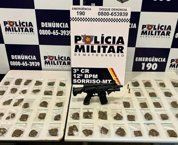 A Polícia Militar (PM) apreendeu porções de maconha, munições e um simulacro de submetralhadora em uma “boca de fumo” localizada no bairro Boa Esperança, em Sorriso, na noite de quinta-feira (06/03). A ação, que faz parte das operações “Tolerância Zero” e “Nortão Seguro”, ocorreu por volta das 23h.