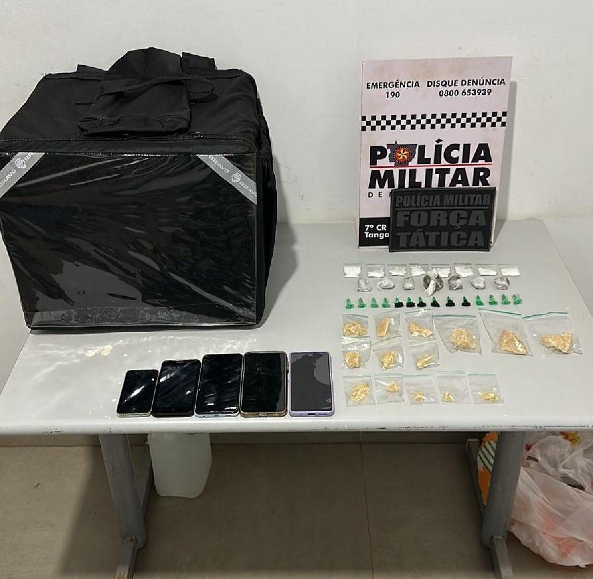 Ainda durante o policiamento tático em Tangará da Serra, os policiais militares receberam informações de que um integrante de uma facção criminosa seria responsável pela comercialização de drogas na região do bairro Dona Júlia. O suspeito utilizava uma motocicleta e uma bag nas costas para a atividade ilícita.