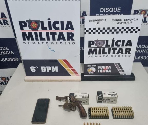 Policiais militares do 6º Comando Regional prenderam, na madrugada deste sábado (25.4), um homem por porte ilegal de arma de fogo, após denúncia de uma tentativa de homicídio, em Cáceres. As equipes apreenderam um revólver, 102 munições e um aparelho celular.
