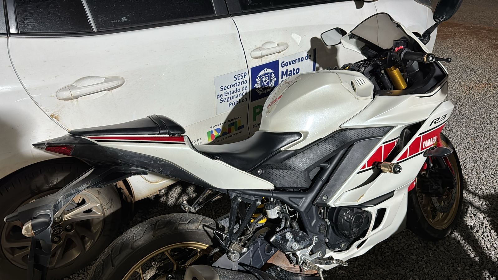 De acordo com o Boletim de Ocorrência, equipes da Polícia Militar foram até o local para averiguar a denúncia e encontraram, nos fundos da residência, uma motocicleta Yamaha R3 branca, furtada na madrugada anterior de uma loja da cidade.
