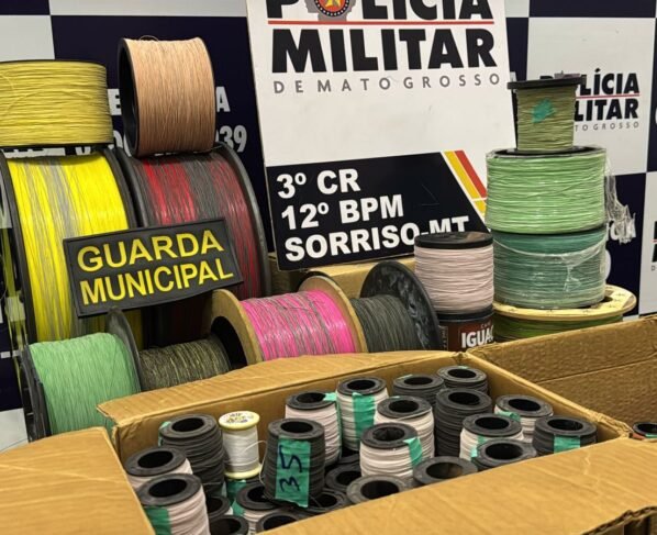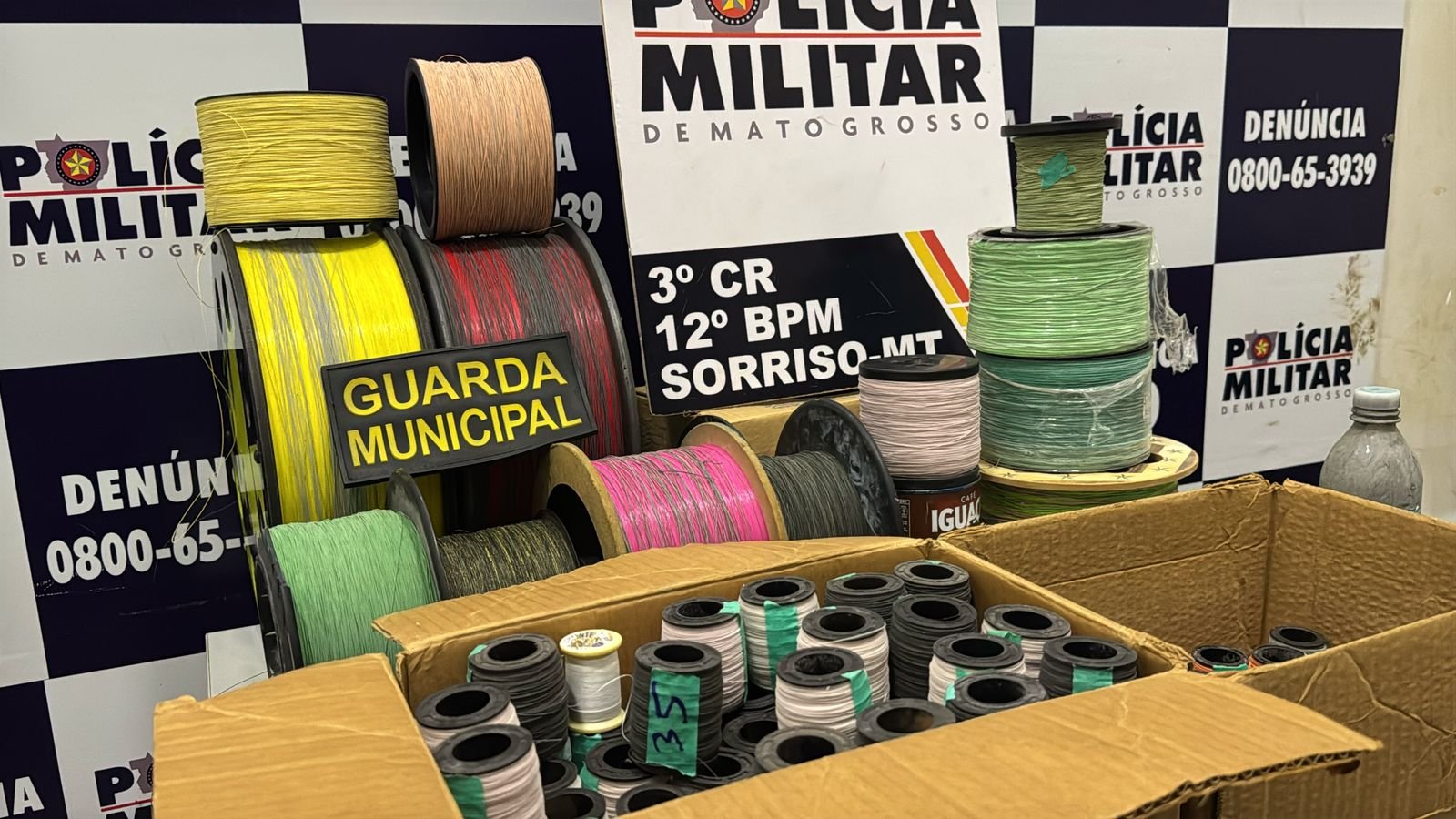 A Guarda Municipal de Sorriso apreendeu esta tarde uma grande quantidade de linhas com cerol, material proibido por representar risco à segurança pública, na rua Santa Gertrudes, no bairro Vitória Régia. Duas pessoas foram conduzidas à delegacia.