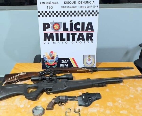 Policiais militares do 24º Batalhão apreenderam três armas de fogo de uma residência e impediram um feminicídio, no bairro Pedra 90, na madrugada desta terça-feira, em Cuiabá. Os objetos apreendidos pertenciam a um homem suspeito de violência doméstica e ameaça contra sua esposa e os três filhos dela.