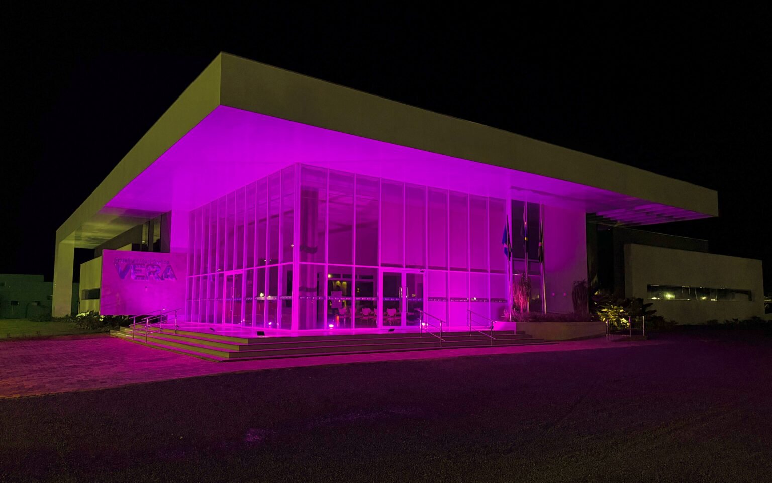 O prédio da Prefeitura de Vera ganhou um novo visual na noite desta terça-feira (14). As fachadas do Paço Municipal, localizado na Avenida Otawa, foram iluminadas com luzes cor-de-rosa, chamando a atenção de quem passa pelo local e marcando o início das ações alusivas ao Outubro Rosa — campanha mundial de prevenção e conscientização sobre o câncer de mama e outros tipos que afetam as mulheres.