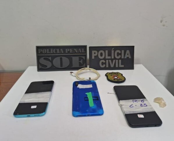 Durante a operação, foram apreendidos celulares e chips na cela do reeducando, que serão periciados para auxiliar na identificação de outros possíveis envolvidos no crime.