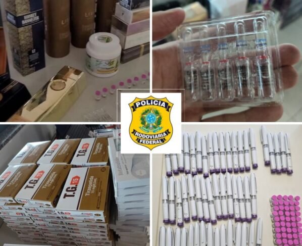 A Polícia Rodoviária Federal (PRF) realizou, na manhã desta sexta-feira (7), uma apreensão significativa de medicamentos de uso controlado, anabolizantes e produtos importados sem documentação fiscal durante fiscalização no km 387 da BR-364, no município de Cuiabá (MT).