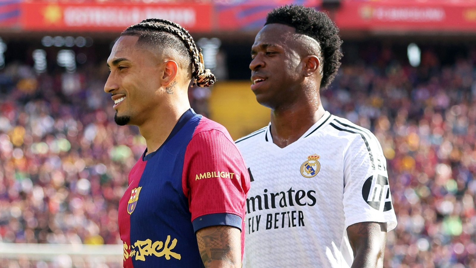Raphinha e Vinicius Júnior na temporada 2024/25 por clubes e Seleção Brasileira: