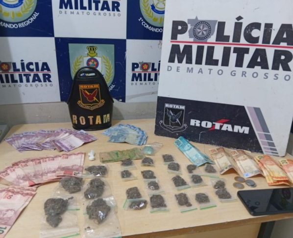 Policiais militares do Batalhão de Rondas Ostensivas Tático Móvel (Rotam) prenderam três mulheres, incluindo mãe e filha, por tráfico ilícito de drogas, na tarde deste domingo (20.4), em Cuiabá. Com as suspeitas, foram apreendidas duas porções de cocaína e 23 porções de maconha, além de uma quantia de R$ 616,00 em dinheiro.