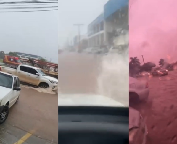 Em alguns trechos, os carros ficaram parcialmente submersos. Até o momento, não há informações sobre o estrago total causado pelos temporais.