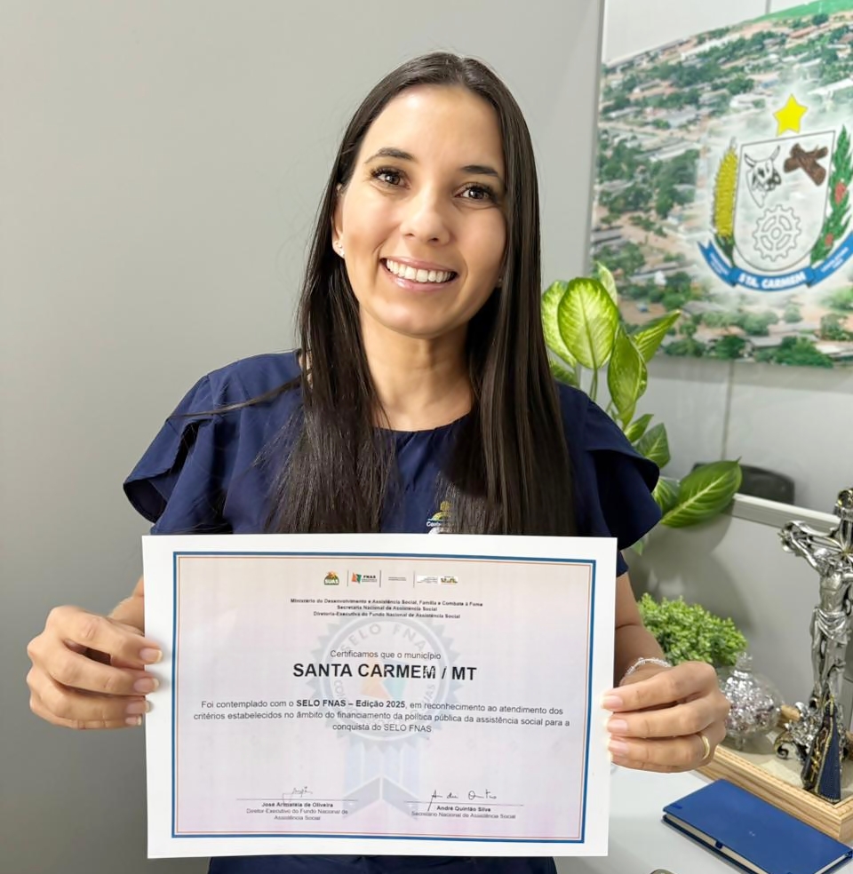 A Prefeitura de Santa Carmem, por meio da Secretaria Municipal de Assistência Social, conquistou o Selo FNAS – Edição 2025, certificação concedida pelo Fundo Nacional de Assistência Social (FNAS) a estados e municípios que demonstram excelência na gestão dos recursos do Sistema Único de Assistência Social (SUAS).