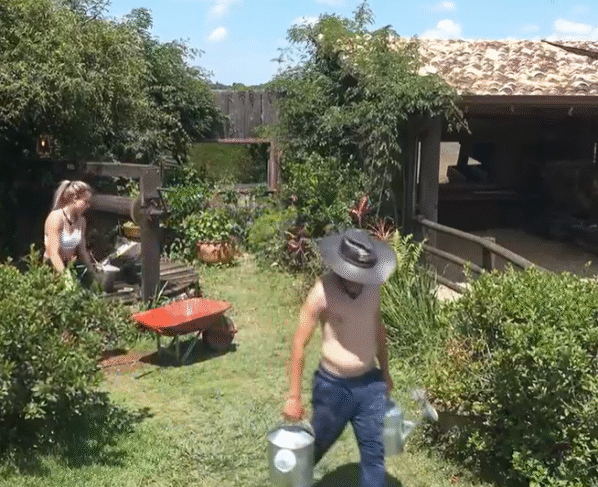 Dudu ajudou Saory a cumprir as tarefas na roça em A Fazenda 17. (Imagem: Divulgação/Record)