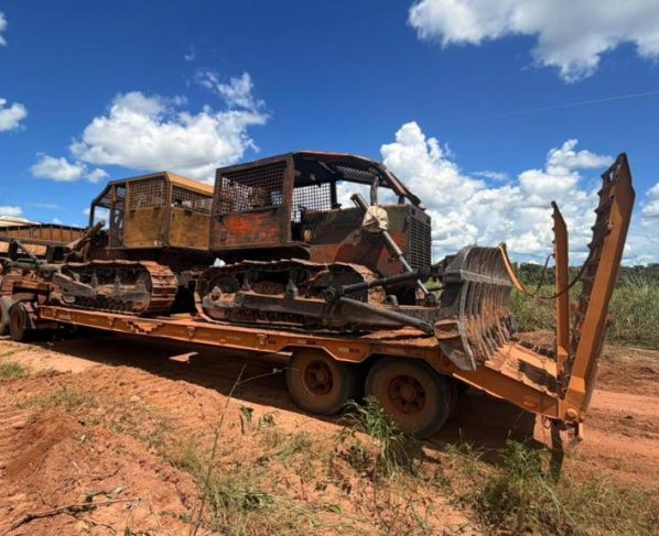 Uma outra máquina foi apreendida em Marcelândia, no dia 16 de abril, em fiscalização ocorrida em conjunto com a Polícia Militar no âmbito da Operação Amazônia de combate a ilícitos ambientais. Na área fiscalizada foram encontradas uma estrada com vestígios recentes de degradação ambiental, com toras e árvores abatidas e apreendido trator de pneu com lâmina usado para arrastar as toras.