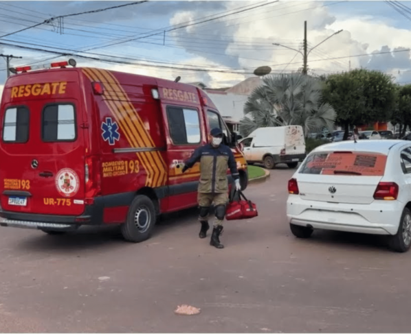 A colisão envolvendo um veículo VW Gol e uma motocicleta ocorreu, ontem, na rotatória da avenida das Figueiras com a avenida das Acácias, na região central. A motociclista foi socorrida pelo Corpo de Bombeiros e levada ao hospital regional, com suspeita de fratura na perna direita.