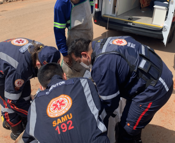 De acordo com os socorristas do SAMU, a vítima teve sangramento de grande volume e foi encontrada caída ao chão. Após aplicar o torniquete no local do acidente, ele foi encaminhado ao hospital regional para avaliação de cirurgia vascular.