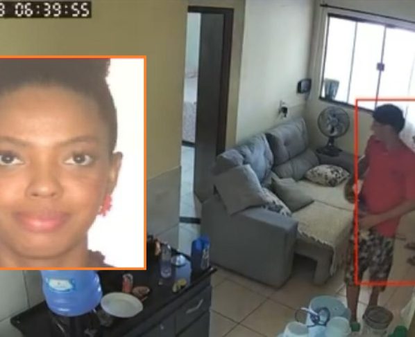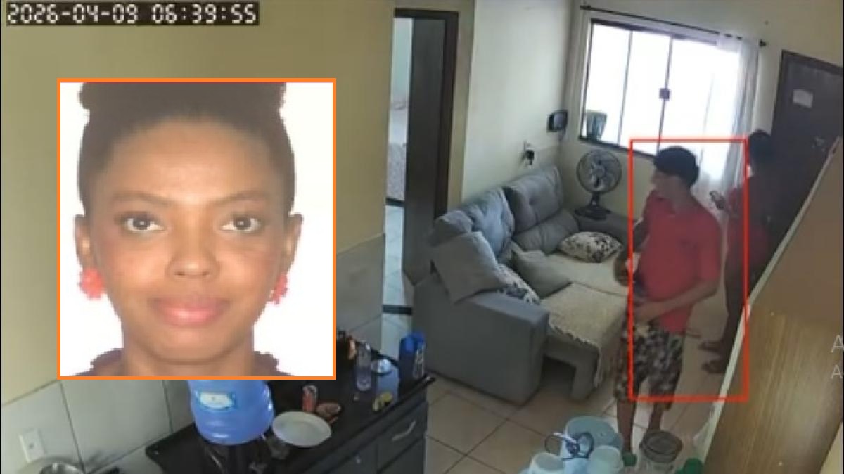 As imagens das câmeras de segurança mostram o momento em que a vítima abre a porta para o suspeito. Em seguida, o homem aparece saindo de um dos cômodos, já vestido com camiseta, e deixando a residência.