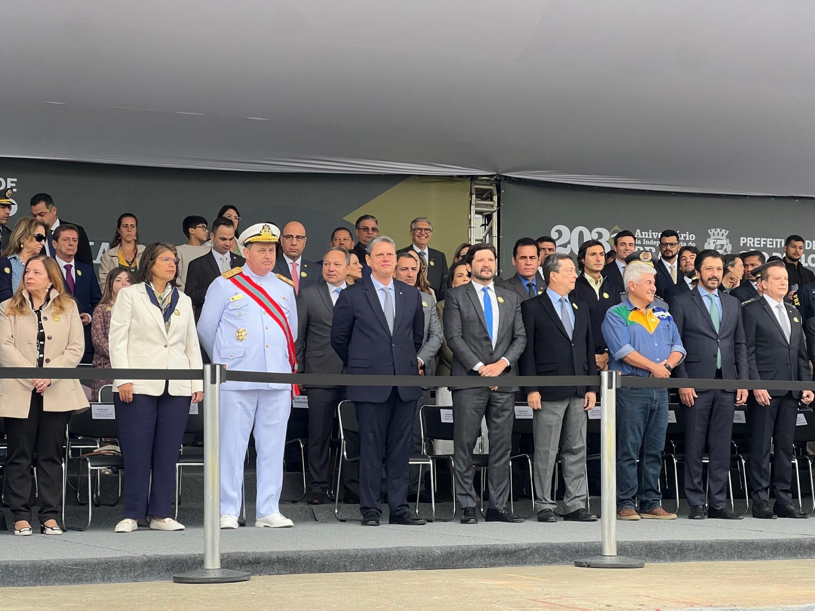 Este é o terceiro ano consecutivo em que Tarcísio e Nunes assistem juntos às celebrações do Dia da Independência. Outras autoridades, como o secretário da Segurança Pública, Guilherme Derrite (PP), o presidente da Alesp (Assembleia Legislativa do Estado de São Paulo), André do Prado (PL), e o senador Astronauta Marcos Pontes (PL-SP) também participam da solenidade.