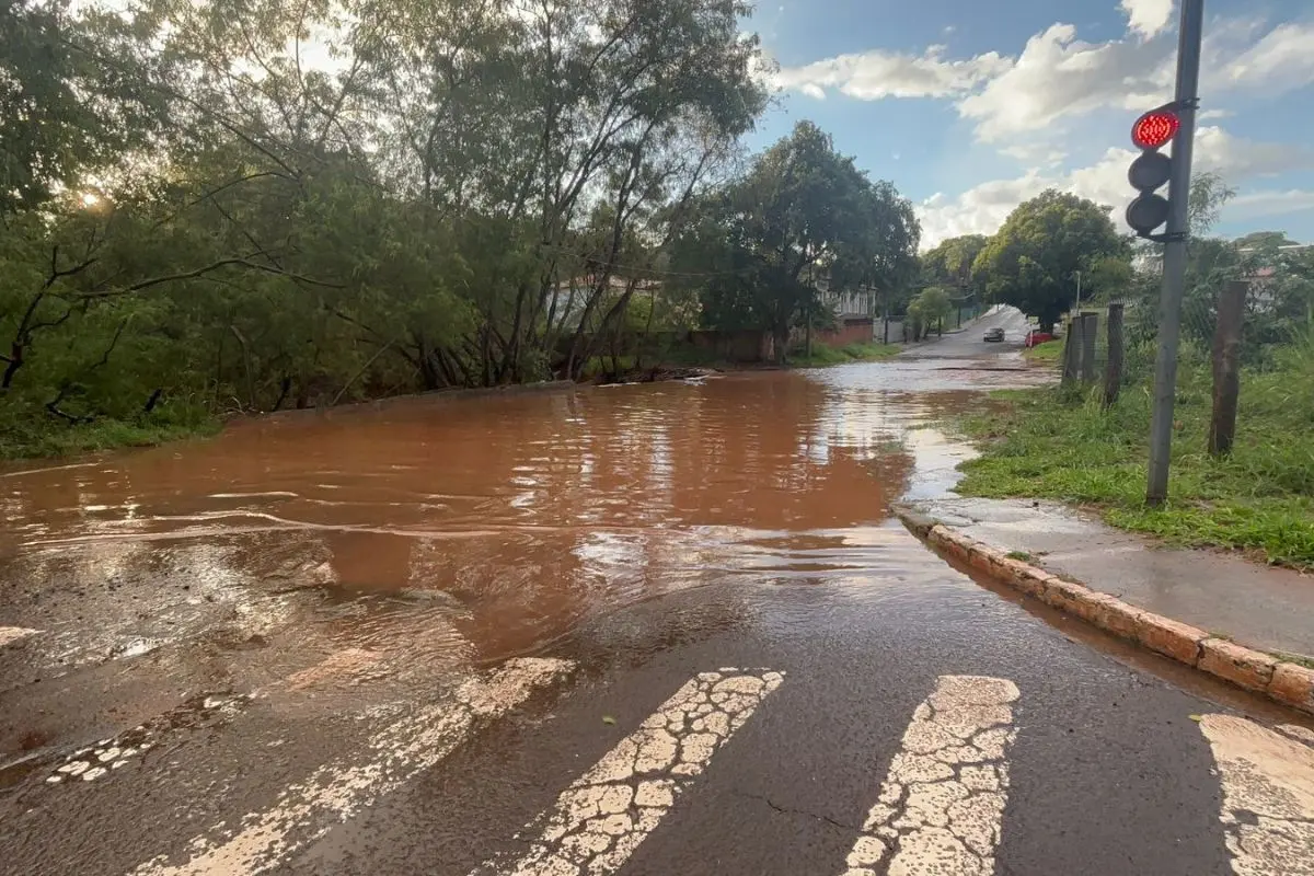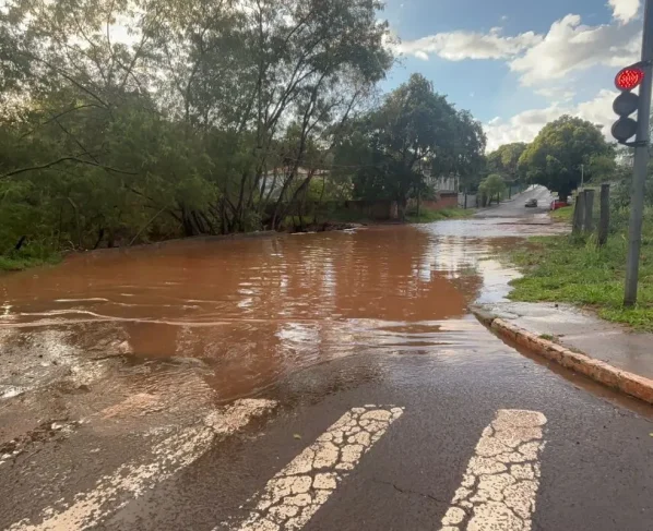 Um dos pontos mais críticos de alagamento é a Rua Portuguesa, que foi tomada pela água próximo ao cruzamento com a Avenida Senador Antônio Mendes Canale, no bairro Pioneiros.