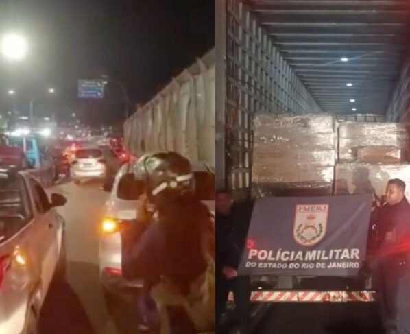 Imagens divulgadas nas redes sociais mostram motoristas parados na pista durante o confronto.