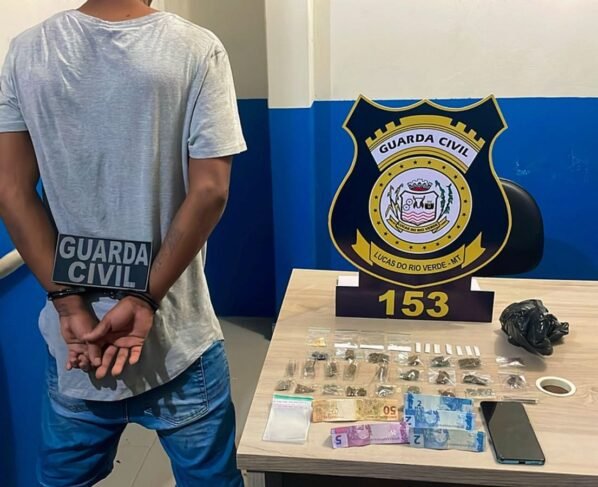 Na madrugada desta sexta-feira (21), a Guarda Civil Municipal (GCM) de Lucas do Rio Verde, em Mato Grosso, realizou a prisão de um homem por suspeita de tráfico de drogas. A ação ocorreu durante um patrulhamento de rotina em um local conhecido pela venda de entorpecentes, nas proximidades de um bar na cidade.