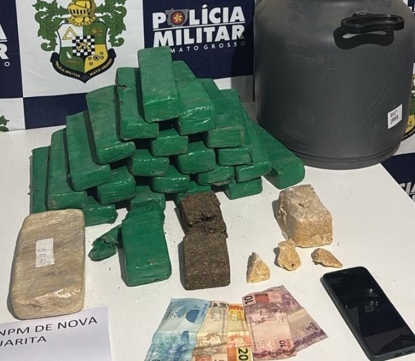 Um homem de 39 anos, foi preso na noite desta quarta-feira (23), com 21 tabletes de maconha, um de pasta-base de cocaína e outras porções fracionadas, na rodovia estadual MT-208, em Nova Guarita (676 km de Cuiabá).