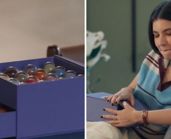 A caixa dupla, contendo 32 unidades de bombons regulares e fechamento de imã, é comercializada por R$ 545, pela Mica Crafted Chocolates.