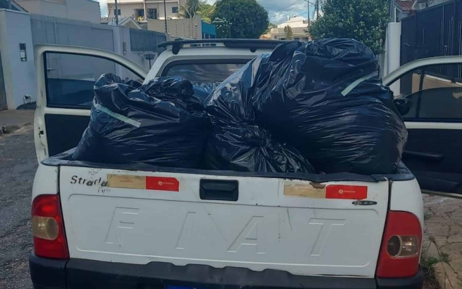 A partir da denúncia, os policiais militares se deslocaram ao local relatado e identificaram os suspeitos carregando os produtos na carroceria de um veículo modelo Fiat Strada, branco. O trio tentou fugir, mas foi detido em seguida.