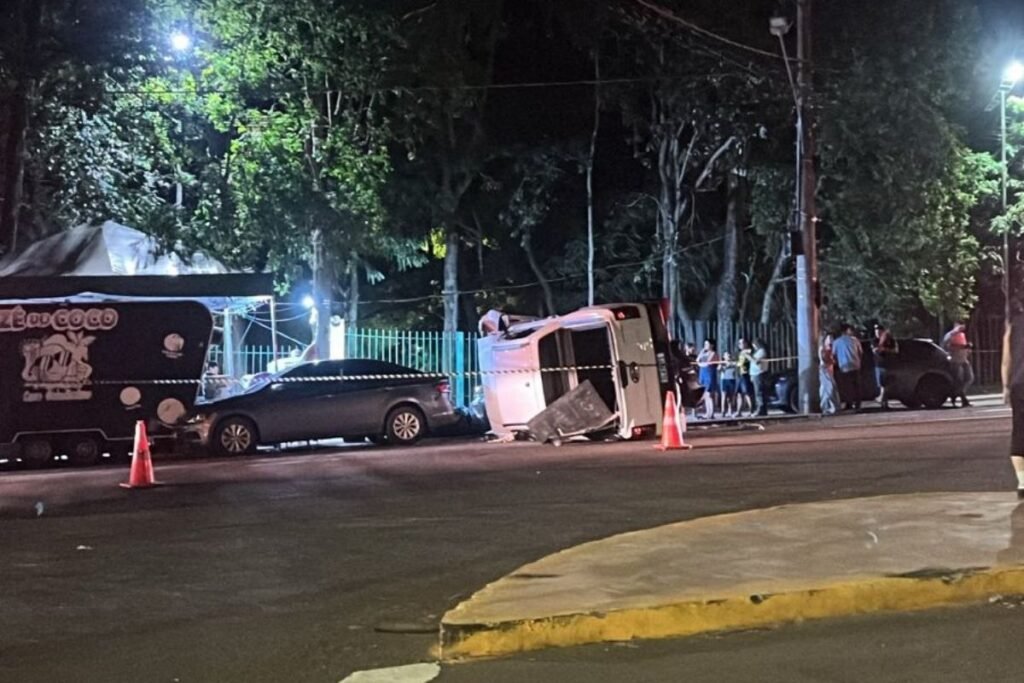 Motorista com sinais de embriaguez capota caminhonete e atinge carros estacionados