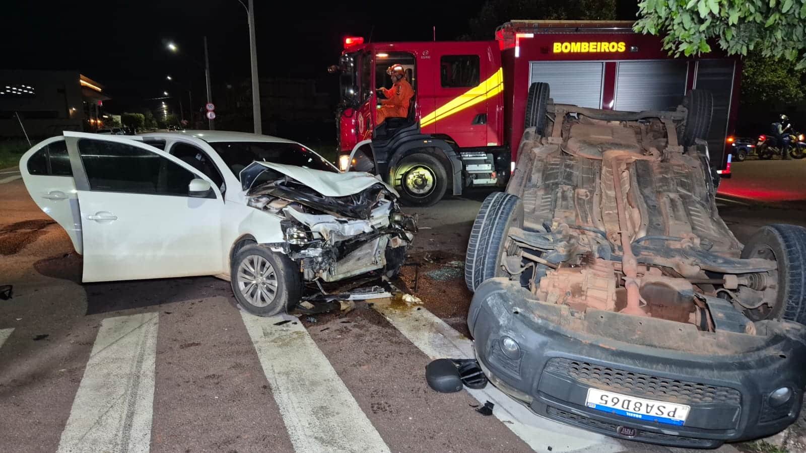 Veículo capota após colisão e vítima fica presa às ferragens em Sinop