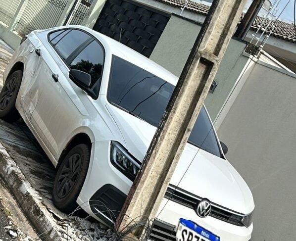 Um acidente de trânsito foi registrado na manhã desta terça-feira (30), na rua dos Pardais, no bairro Recanto dos Pássaros, em Sorriso. Um veículo VW Virtus colidiu contra um poste de energia elétrica após o motorista deixar o freio de mão desengatado.